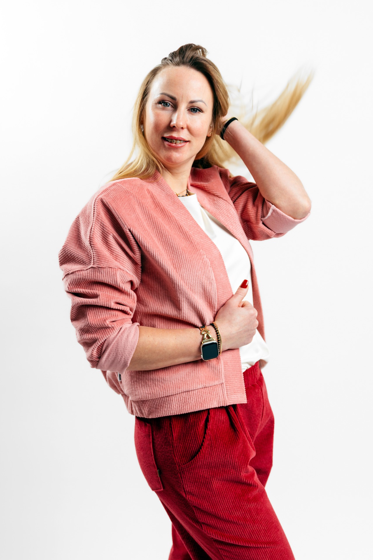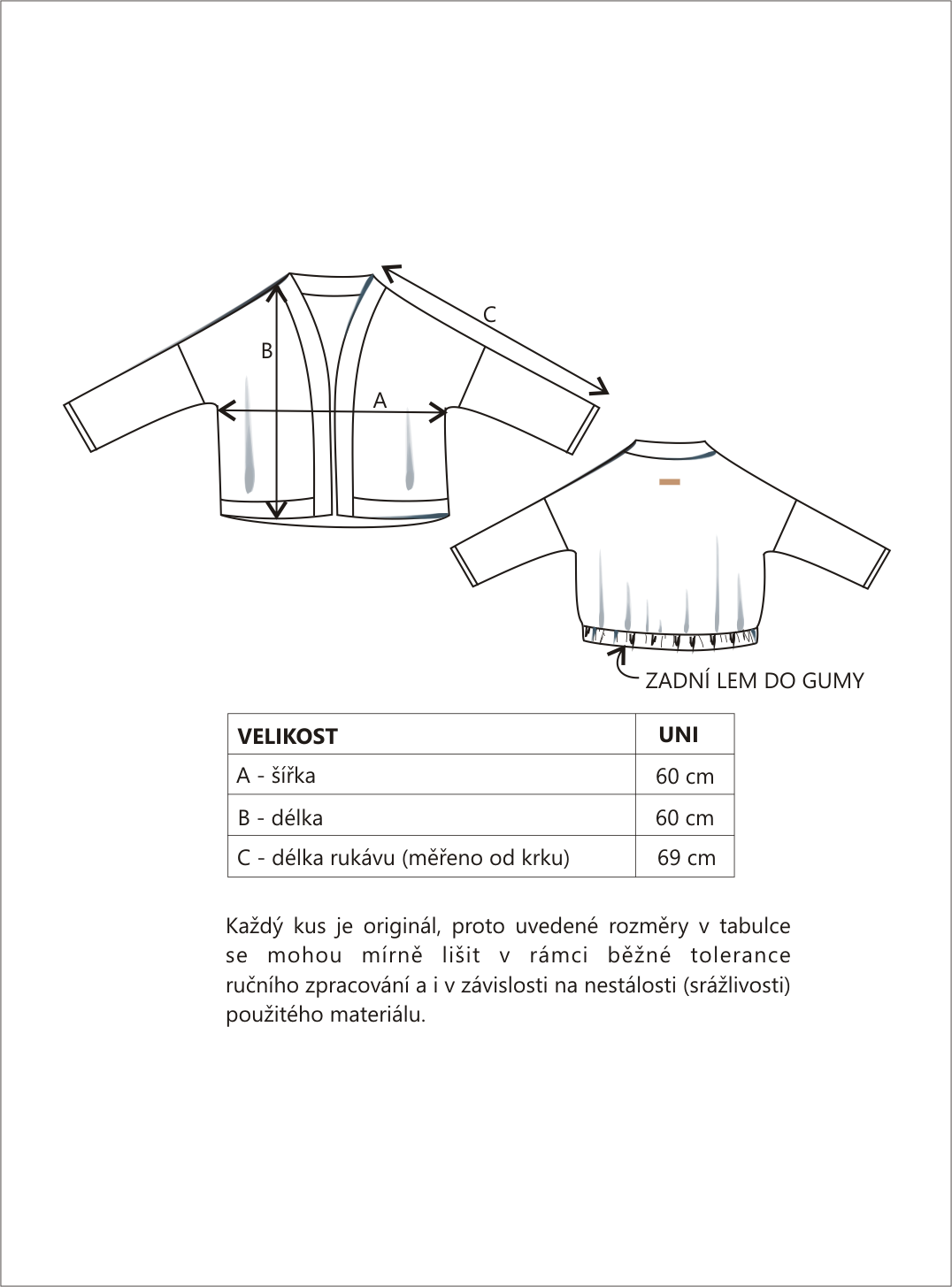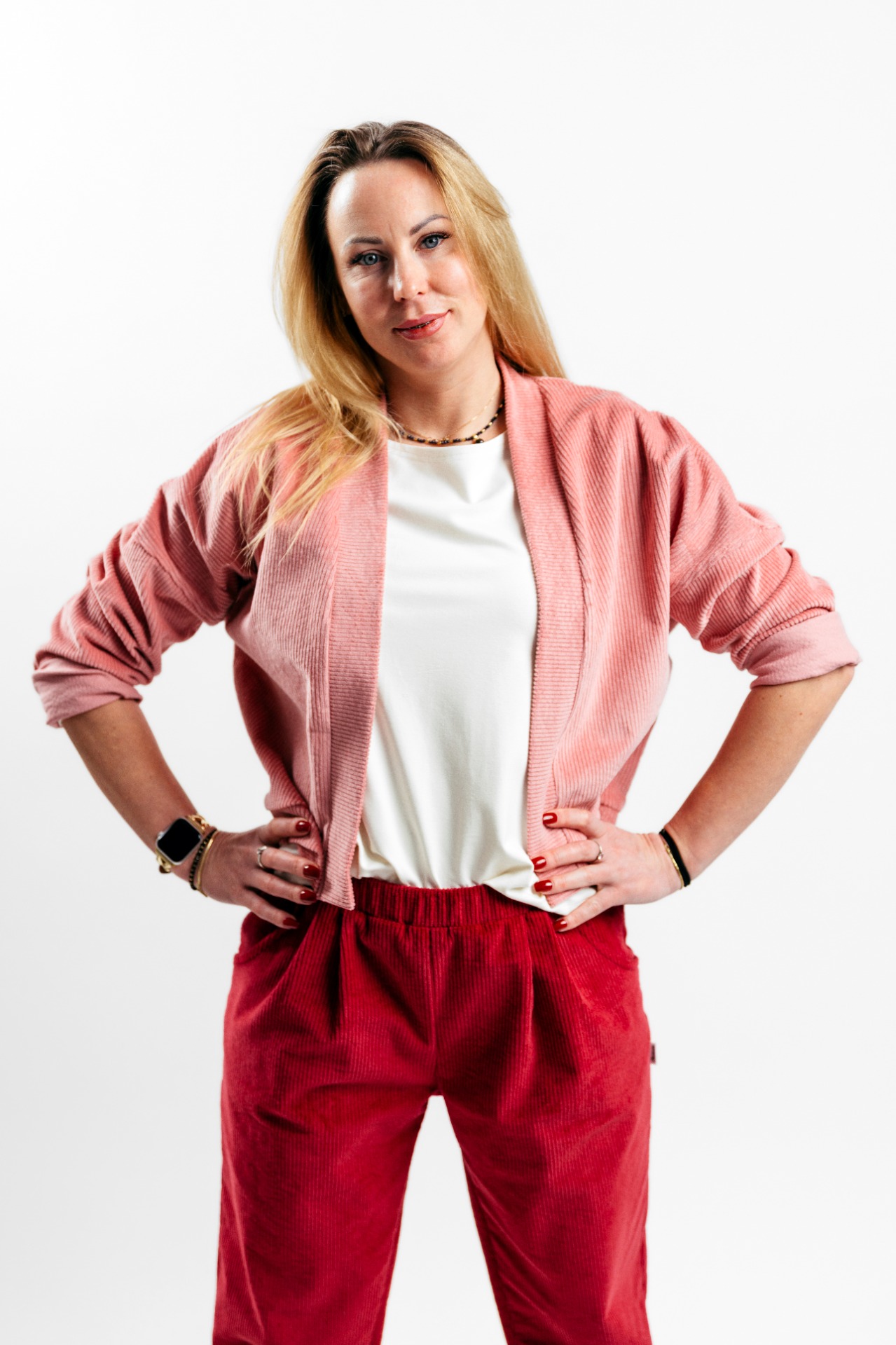 Manšestrové bolero volného střihu, rukávy lze nosit volně spuštěné nebo efektně ohrnuté podle nálady a stylu. Zadní díl je zakončený lemem do pružné gumy, která vytváří jemný bomber efekt a pěkně drží tvar. Ideální kousek pro vrstvení a přechodné období, které ti nesmí chybět ve tvém šatníku.