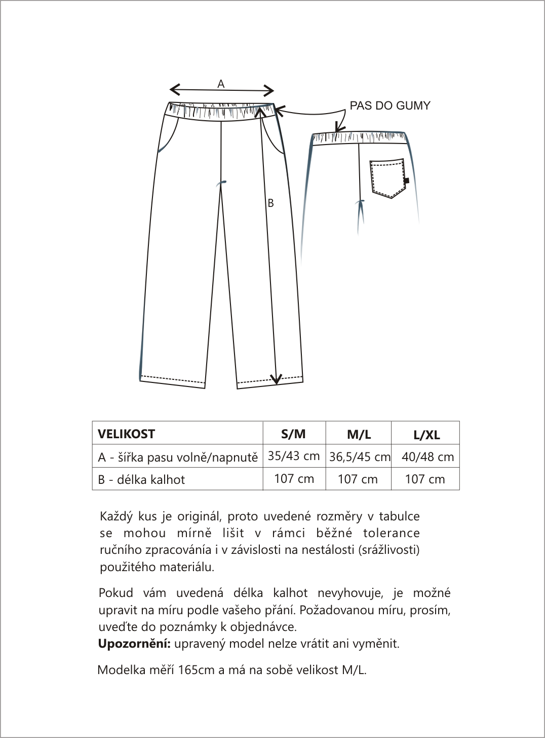 nadčasový styl. Pružný pas zajišťuje komfort při nošení, zatímco rovné nohavice