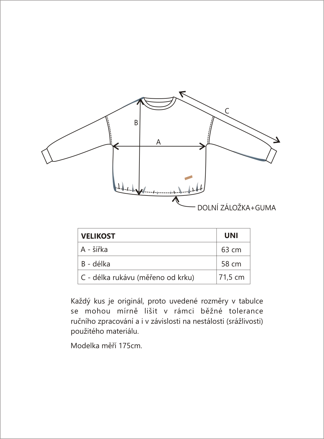 kraj je lehce stažený pružnou gumou, díky které mikina dobře drží tvar. Tento univerzální
